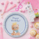 Bear Cub Blue Schachbrett Happy Birthday Pappteller