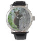 Uhr, Klassische Damenuhr mit schwarzen Lederarmband