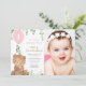 Bear ersten Geburtstag rosa grüne Mädchen Ballons Einladung
