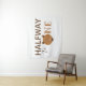 Ein halbes Geburtstagsgeschenk für Ihr Baby. Feiern Sie mit diesem niedlichen Banner die ersten sechs Monate Ihres Babys. Es hat ein weißes und braunes Farbschema mit dem Wort "Eins" einschließlich einer Bärenansichtsillustrierung als erster Buchstabe des Wortes. Fügen Sie einfach diese Tapisserie in Ihren Warenkorb, und glücklicher halber Geburtstag zu Ihrem wunderbaren Baby! Bear Halfway zu einem Baby Halbtagsbanddesign | ©Melissa Patton - Künstler/Illustrator