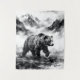 This powerful grizzly bear tapestry features a majestic brown bear walking through misty mountain meadows with snow-capped peaks rising in the atmospheric background. Created with flowing black and white ink wash painting techniques, the artwork captures detailed fur texture and the raw strength of wilderness with dramatic depth and ethereal fog layers. Perfect for wildlife enthusiasts, nature lovers, hikers, and outdoor adventurers who appreciate the untamed spirit of the wild. This premium quality tapestry (50" x 60") is ideal for cabin decor, rustic home aesthetic, dark academia style, nature-inspired offices, or as a meaningful gift for camping enthusiasts and wildlife photographers. The monochrome composition brings the powerful presence of mountain wilderness into any space, creating a bold and contemplative atmosphere.