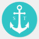 Bearbeitbare Hintergrundfarbe Monogram Ankerhochze Runder Aufkleber
