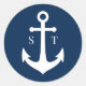 Bearbeitbare Hintergrundfarbe Monogram Ankerhochze Runder Aufkleber