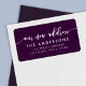 Stilvolles Rücksenderetikett mit den Worten "Unsere neue Adresse" in einem weißen Relax kursiv Skript und einer bearbeitbaren Hintergrundfarbe (klicken Sie auf Anpassen, um zu erreichen). Es ist perfekt für den Moment, wenn Sie gerade auf eine neue Zuhause umgezogen sind. Personalisieren Sie es, indem Sie den Platzhalter-Text ersetzen. Für weitere Optionen, wie zum Beispiel den Schriftart, die Textgröße oder den Abstand zwischen den Buchstaben zu ändern, klicken Sie auf die Schaltfläche "Anpassen". *Bitte beachten Sie, dass das Zazzle-Wasserzeichen in der Zoomvorschau NICHT auf dem gedruckten Endprodukt © Rosewood and Citrus erscheint