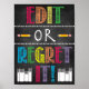 Das lustige Englische oder Literaturstudio 'EDIT OR REGRET IT' Printable Poster verfügt über ein Imitat-Chalkboard und ist in hellen, auffälligen Farben gehalten. Arbeitet gut für High School oder Middle School Englisch Klassenzimmer Dekoration! macht großartige Plakate für den Klassenraum, die Jahr für Jahr verwendet werden können. Sie können auch laminieren oder rahmen! MACHT EIN GROSSES GESCHENK, um den Lehrern Anerkennung zu zeigen!!! Bereit zum Drucken und Aufhängen! Fügen Sie Ihrem Klassenzimmer mit diesen bedruckbaren Plakaten ein paar helle Farben und Spaß hinzu!