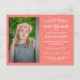 Personalisierte Korallen (bearbeitbare Hintergrundfarbe) Abschluss "Save the Date" Postkarte mit handgezeichnet Blattakzenten