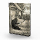 Artist: William Holbrook Beard. Pen and ink drawing, c. 1860. A bear chained in a barnyard holds a surprised dog while a donkey looks on from over the fence. Published as a card by Currier & Ives; the original caption to the image was the donkey saying: "I told you so!" Whimsical black and white drawing in sepia-tone.