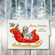 Auf dieser Urlaubskarte sitzt ein bärtiger Collie Dog in einem hübschen, rot-goldfarbenen Schlitten. Neben dem Hund sitzen Geschenkpackungen mit bunten Bögen, und hinter dem Schlitten ist heilig mit roten Beeren. Im goldenen Text rechts steht "MERRY CHRISTMAS" und Ihr eigener Text ist grün. Der gesamte Text, innen und außen, kann leicht auf alles geändert werden, was man möchte. Im Dog Village können Sie mehr Bilder und Produkte der Hundezucht sehen.
