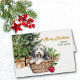 Auf dieser Urlaubskarte legt ein niedlicher bärtiger Collie Hund in seinem Korbbett vor einem verzierten Weihnachtsbaum. Hinter dem Korb befindet sich ein hübscher roter Strauß mit Heiligen Beeren und Kiefernkonus. Der goldene Text auf der rechten Seite sagt "MERRY CHRISTMAS", mit GLÜCKLICHEM NEUEN JAHR in grün darunter. Der gesamte Text, innen und außen, kann leicht auf alles geändert werden, was man möchte. Im Dog Village können Sie mehr Collie-Bilder sehen, ebenso wie andere Aufnahmen der Rasse.