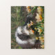 Eine niedliche Bartollie, die die Frühlingsblumen genießt.