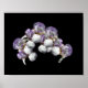 Hübsche lila und weiße Bart-Iris-Blume Bouquet-Design von Susan auf schwarzem Hintergrund.