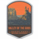Bears Ears National Monument Ein Abzeichen der Vintage von Mesas, Buttes und Türmen im Tal der Götter, ehemals Teil des Bars Ears National Monument, nördlich von Monument Valley in der Nähe von Bluff, Utah.