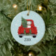 Bearted Collie Hunderoter LKW Keramik Ornament