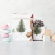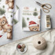 Süßes Aquarellbären in Weihnachtsmannmützen mit Kiefernbäumen, kleinen Geschenken und Schnee. Personalisieren Sie sich mit einem Kindernamen für eine gemütliche, kinderfreundliche Weihnachtsverpackung in warmen, neutralen Grüntönen.