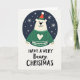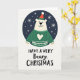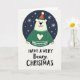 This digital drawing card shows a cute polar bear ready for the holidays! The bear has soft white fur and wears a red and white Santa hat with a pom-pom. It also has a detailed green sweater with a white heart on it. The backdrop is a deep blue circle with white snowflakes and dots, like a snowy night. The bear's face is friendly with a gentle smile and black eyes. Underneath, it says "HAVE A VERY Beary CHRISTMAS" in fancy handwriting. It all looks super cozy and festive! 🎅🏼🎄🎁