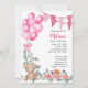 Beary First Birthday Pink Ballon Einladung