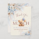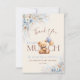 This heartwarming thank you card was designed to express gratitude in the sweetest way. A cuddly teddy bear with soft blue balloons and airy florals creates a gentle, storybook feel—perfect for sharing sincere thanks with friends and family after a beautiful baby shower celebration.