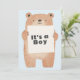 Feiern Sie stilvoll mit dieser bezaubernden Babydusche-Einladung mit einer niedlichen Teddy-Aquarell-Illustration mit einem Schild, auf dem steht: "Es ist ein Junge." Auf der Rückseite finden Sie alle Veranstaltungsdetails mit weichem blauem Hintergrund und spielerischer Bärenüberschrift. Ideal für Woodland- oder tierspezifische Babyduschen!