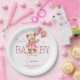 Beary niedlich Girl Teddy Bär Baby Dusche Geschirr Vorlage personalisierte Teller, niedlich flauschige Mädchen Teddy Bär mit einem rosa Kleid und ein rosa Bugs rosa Ballons Baby Dusche Template Einladung, Teddy Bären themed Girls Baby Dusche Papier Teller.