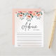 Dé tu consejo a esta futura mama con esta tarjeta de consejo de ducha de personalizable. Presenta una Linda Tematica floral en acuarela con tonos elegantes en rosa y durazno. Personalice esta tarjeta de consejo para baby shower floral añadiendo su propio texto. Esta tarjeta de consejo floral es perfecta para un baby shower de primavera o verano