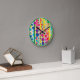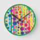 Ein lebendiges Design von Polka Dot Blasen über Streifen in einem Regenbogen mit hellen Farben sorgt für einen Retro-Effekt mit moderner Anziehungskraft. Wählen Sie eine beliebige Farbe für die Grenze (hier in kelly green) oder überhaupt keine Grenze. Es gibt auch eine optionale innere Grenze/Band, an der man sich einschalten kann, um die Uhr-Nummern noch mehr herauszuheben. Wählen Sie aus 6 verschiedenen Zahlenstilen. Klicken Sie auf "Anpassen", und Sie sehen die Designelemente, die auf dem . Ein Symbol, das wie ein Auge aussieht, mit einer Linie durch es bedeutet, dass das Element vor der Sicht versteckt ist. Verwenden Sie die Augensymbole, um ein- oder auszuschalten.
