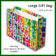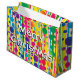 Ein gewagtes Design von Polka Dot Bläschen über Streifen in einem Regenbogen von hellen Farben macht eine fröhliche Geschenktasche. Die frohe Weihnachtsmeldung kann für jeden Anlass angepasst oder ganz gelöscht werden, indem das Textfeld leer verlassen wird.