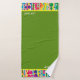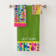 Ein mutiger Entwurf der Tupfenblasen über Streifen in einem Regenbogen der hellen Farben macht für einen Retro Effekt mit moderner Berufung. Vervollkommnen Sie für das Badezimmer jedes mögliches Kindes oder herauf das Gastbad liven. Die Hintergrundfarbe des Badtuches (gezeigt hier in Kelly-Grün) und die Grenzakzentfarbe des Handtuches (gezeigt hier im Pink) können zu allen möglichen Farben geändert werden, die Sie mögen. Sie können jede mögliche Farbe auch wählen, die Sie für die Akzentstreifenfarben mögen (gezeigt hier im sonnigen Gelb). Sie können dieses Tuch-Set mit jedem möglichem Namen personifizieren oder den Textfeldfreien raum verlassen, wenn Sie ihn ohne einen Namen bevorzugen. Washcloths, Handtücher und Badtücher sind- separat oder als Set verfügbar. Wählen Sie Ihre eigenen Farben für ein Mischungs- u. Match-Set, das tadellos mit Ihrem Farbentwurf koordiniert