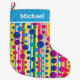 [Beatnik Bubbles] Retro Polka Dot Streifen blau Großer Weihnachtsstrumpf