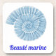 An elegant watercolor ammonite shell in soft blue tones, capturing the timeless beauty of the ocean. Delicate spiral patterns with a gentle watercolor texture, paired with the French caption "Beauté Marine" (Marine Beauty).