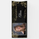 Elegantes und feminines Banner mit glitzerndem goldfarbenem Glitzer, dekorativen Ecken und Konfetti. Personalisieren Sie die Verwendung für 16 . Geburtstag, Bat Mitzvah, Quinceanera, Jahrestag und Verlobungen, ändern Sie einfach den Text. Alle Designelemente können verschoben und in der Größe der Banner angepasst werden. Die schwarze Hintergrundfarbe kann nach Ihren Wünschen geändert werden.