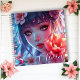 Anime-personalisiert-Notebook. Ein wunderschönes Mädchen mit rosa Augen, Blume und musikalischen Noten glänzt mit Lila und rosa Blumenakzenten.