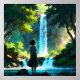 Stunning AI-Generated Art of a beautiful anime waterfall illustration, featuring a girl peacefully watching the cascading waters.