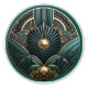 Herrliches Art Deco Bild eines geometrischen Goldes, schwarz und türkisfarben Keramik Drehknopf. Dieser wunderschöne, aufwändige Art-Déco-Knopf wäre schön auf jedem Schrank oder in Ihrem Zuhause. Hübsche Farbtöne aquamarin, türkis, schwarz und goldfarben.