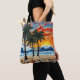 Beach art tote bag. An impasto oil painting style ai illustration of a beach full of palm trees, sea glass, sea shells and ocean waves at sunset. A bright colorful mesh of colors make this coastal art vibrant and beautiful!
