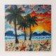 Beach art puzzle. An impasto oil painting style ai illustration of a beach full of palm trees, sea glass, sea shells and ocean waves at sunset. A bright colorful mesh of colors make this coastal art vibrant and beautiful!