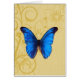 Das Design eines wunderschönen, großen, dunkelblauen Monarchen-Schmetterlings vor einem Vintagen Blumenhintergrund. Dieses Kunstdesign zeigt die natürliche, lebendige Farbe des Schmetterlings und hat ein Retro-Vintages Gefühl.