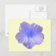 Auf dieser Postkarte befindet sich ein Foto einer Nasturtium-Blume. Das Foto wurde künstlich gefärbt, was zu einer atemberaubenden blassblauen Blume mit weißen und leicht lila Farbtönen führt. Der Hintergrund ist eine blassgelbe, sonnige Farbe.