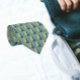Kleid im Stil mit dieser stilvollen Krawatte, die das Foto eines wunderschönen, blauen Pfauens zeigt, in einem sich wiederholenden Muster gedruckt.