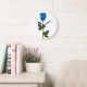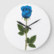 Beautiful Blue Rose with Stem and Leaves Große Wanduhr