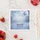 Papierservietten mit einem magischen Fantasiehimmel mit flauschigen blauen Wolken und einem großen schönen Mond. 2 weiße Schwäne fliegen zusammen ab.