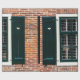 Beautiful dutch traditional houses. Brick wall with window in historic old town.