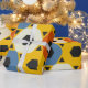 It's a computer programming art suitable for wrapping paper. It's a colourful geometric pattern design.