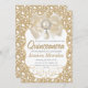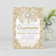 Feiern Sie einen besonderen Tag mit dieser wunderschönen Quinceanera-Einladung! Das elegante Bugcenter mit goldfarbenem filigranem Hintergrund. Vollständig anpassbar und fertig für Ihren Text!