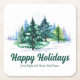 This beautiful custom business holiday party coaster features gorgeous green Christmas trees in a winter landscape above your customized company name and Happy Holidays. Personalized holiday decor for a corporation or family.