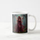 Eine wunderschöne Fee mit einem fließenden roten Kleid und eine Kette und ein Gürtel aus Garnelen mit Nelken und Garnelen in ihren langen, dunkelroten Haaren und hellroten Drachenflügeln, die in jeder Hand eine rote Nelke tragen, führt durch einen magischen Wald, der von Glühwürmchen, Blume und moosbewachsenen Rebbäumen umgeben ist.
