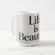 Start your day with positivity using this stylish “Life Is Beautiful” mug. Its clean black‑and‑white design and bold typography make it perfect for coffee, tea, or any daily ritual. Durable, modern, and uplifting, this mug adds a touch of inspiration to your kitchen, office, or workspace