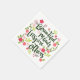 Leider ist beim Bestellvorgang nicht die Größe angegeben, zumindest habe ich es nicht gesehen. Der Name "Duschen"-Servietten ist etwas seltsam :-) Aber man kann aus verschiedenen Designs auswählen und es sieht ganz nett aus. Ich würde mir aber noch viel mehr verschiedene Farben und Muster wünschen! Insgesamt eine nette Idee für ein personalisiertes Accessoire zu allen möglichen Feiern. Der Druck ist OK, er ist nur ganz leicht unscharf.