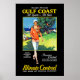 Vintages Bahnposter, das den schönen Mississippi und die Golfküste als ganzjähriges Sport- und Urlaubsziel fördert.