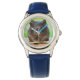 Kinderuhr aus Edelstahl mit blauem Lederarmband