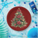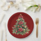 Gorgeous watercolor Christmas tree with poinsettias and ornaments design pattern were used to create this cute as ever paper plate for your holiday table.